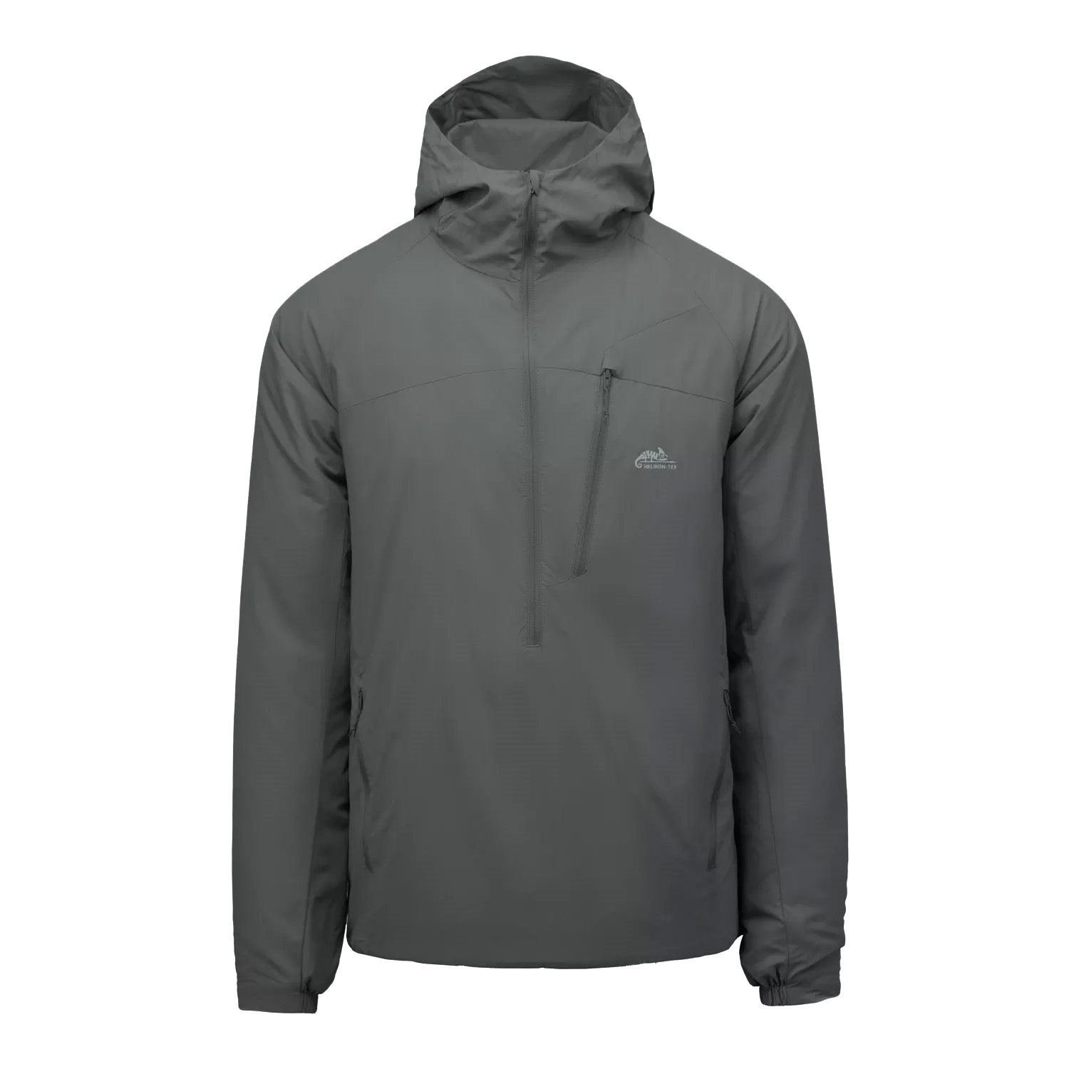 La chiusura della giacca è costituita da una mezza cerniera YKK centrale, terminante nel colletto con una protezione per il collo e la barba. Il cappuccio della giacca è piuttosto profondo ed è possibile regolarlo nella parte posteriore tramite un cordino elastico con fermacorda. Le tasche laterali in vita sono capienti e chiuse con cerniera. La tasca sul petto è ampia, anch’essa chiusa da cerniera, e può contenere senza problemi piccoli oggetti che si desidera avere rapidamente a portata di mano. Le maniche sono raglan per una maggiore resistenza e i polsini sono rifiniti con un bordo elastico che impedisce la dispersione di calore. L’orlo inferiore della giacca può essere stretto con un cordino dotato di fermacorda per massimizzare il comfort durante l’uso.