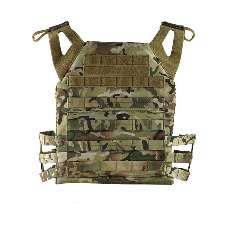 Versione aggiornata del classico giubbotto JPC (Jumpable Plate Carrier). Il miglioramento consiste nella compatibilità con il sistema di componenti intercambiabili fissati tramite fibbie, che consente di adattare rapidamente il giubbotto a qualsiasi situazione. Il giubbotto è regolabile in termini di dimensioni nella zona della schiena e delle spalle. La parte anteriore e posteriore sono dotate di un sistema di aggancio modulare standard PALS/MOLLE e pannelli in VELCRO per le vostre targhette, toppe, ecc. Il giubbotto è dotato di una tripla tasca per caricatori di fucile.