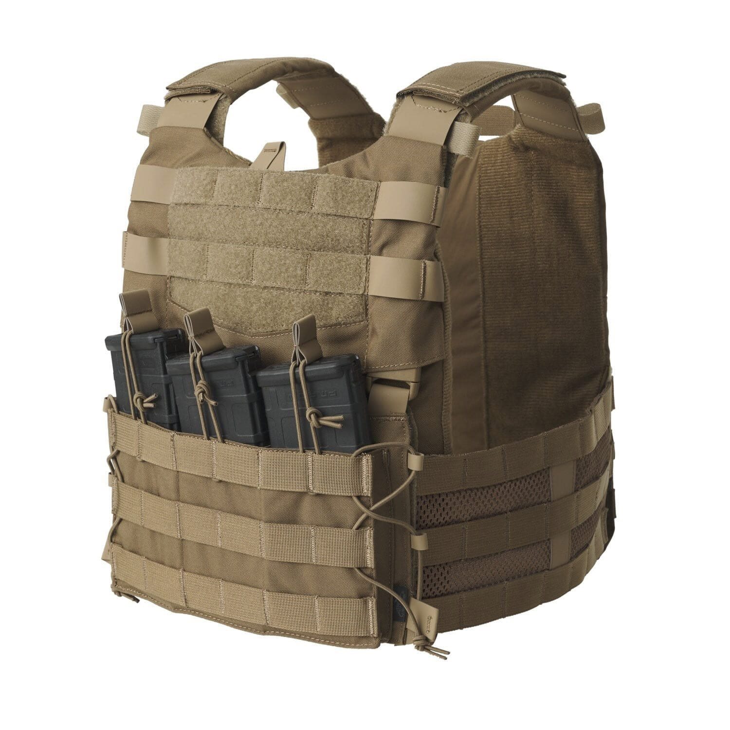 Gilet tattico moderno a basso profilo progettato per l'inserimento di piastre balistiche. Grazie all'ampia gamma di accessori, può essere facilmente adattato alla situazione. Il gilet è realizzato in resistente nylon Cordura in combinazione con il comodo materiale elasticizzato in quattro direzioni Versastretch e hypalon nei punti soggetti a maggiore sollecitazione. Il set comprende una coppia di fianchi fissati con velcro e un pannello frontale con tripla tasca per caricatori di fucile. I fianchi dispongono di un sistema di aggancio modulare per fissare ulteriori attrezzature, mentre la tripla tasca è progettata principalmente per caricatori di tipo AK/AR.