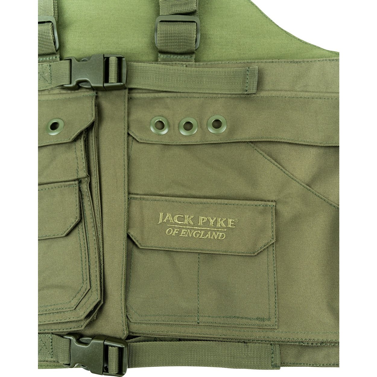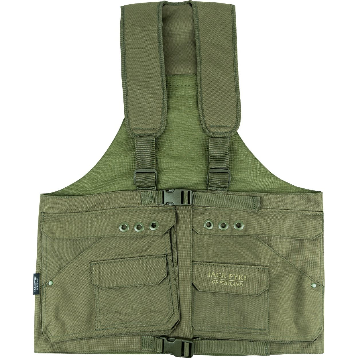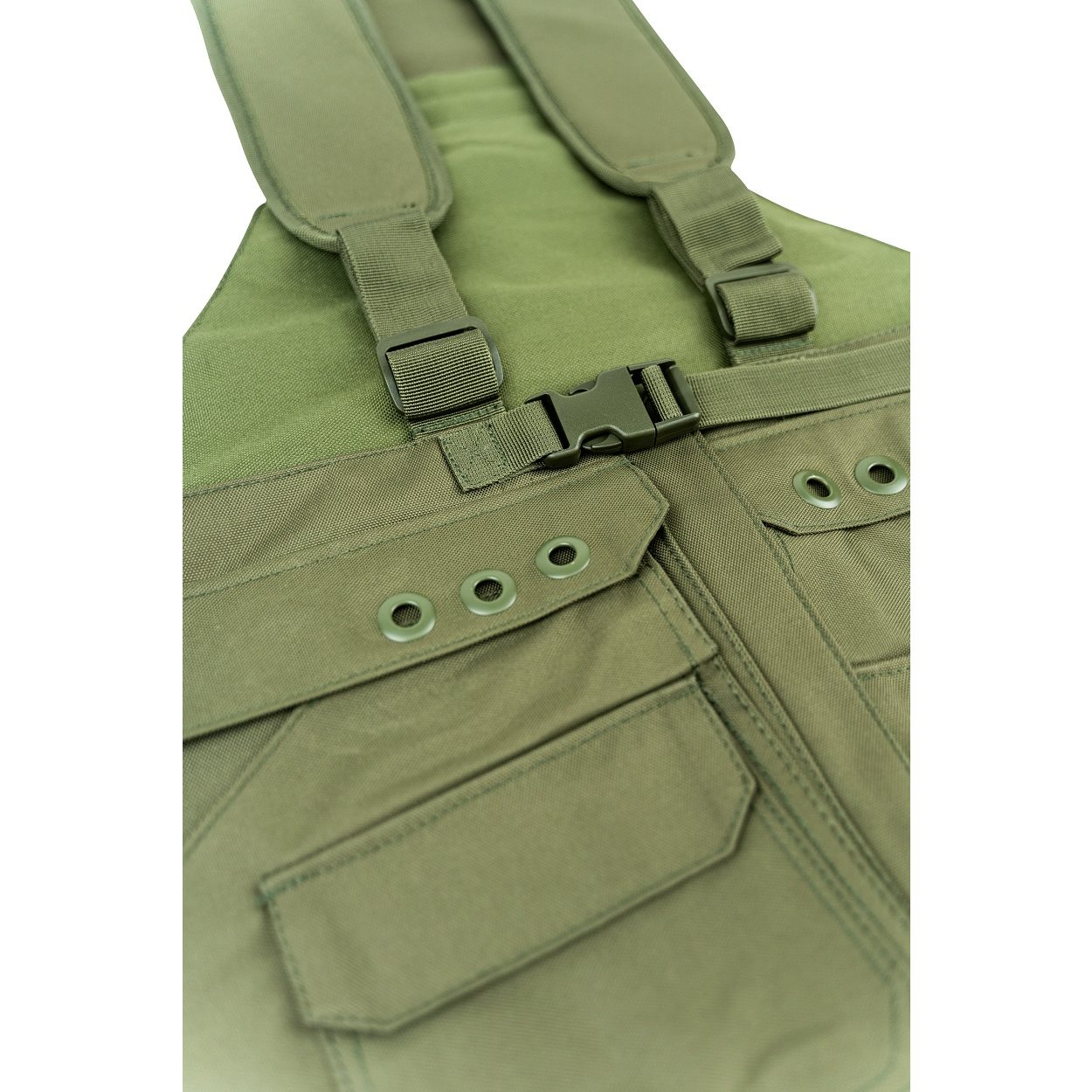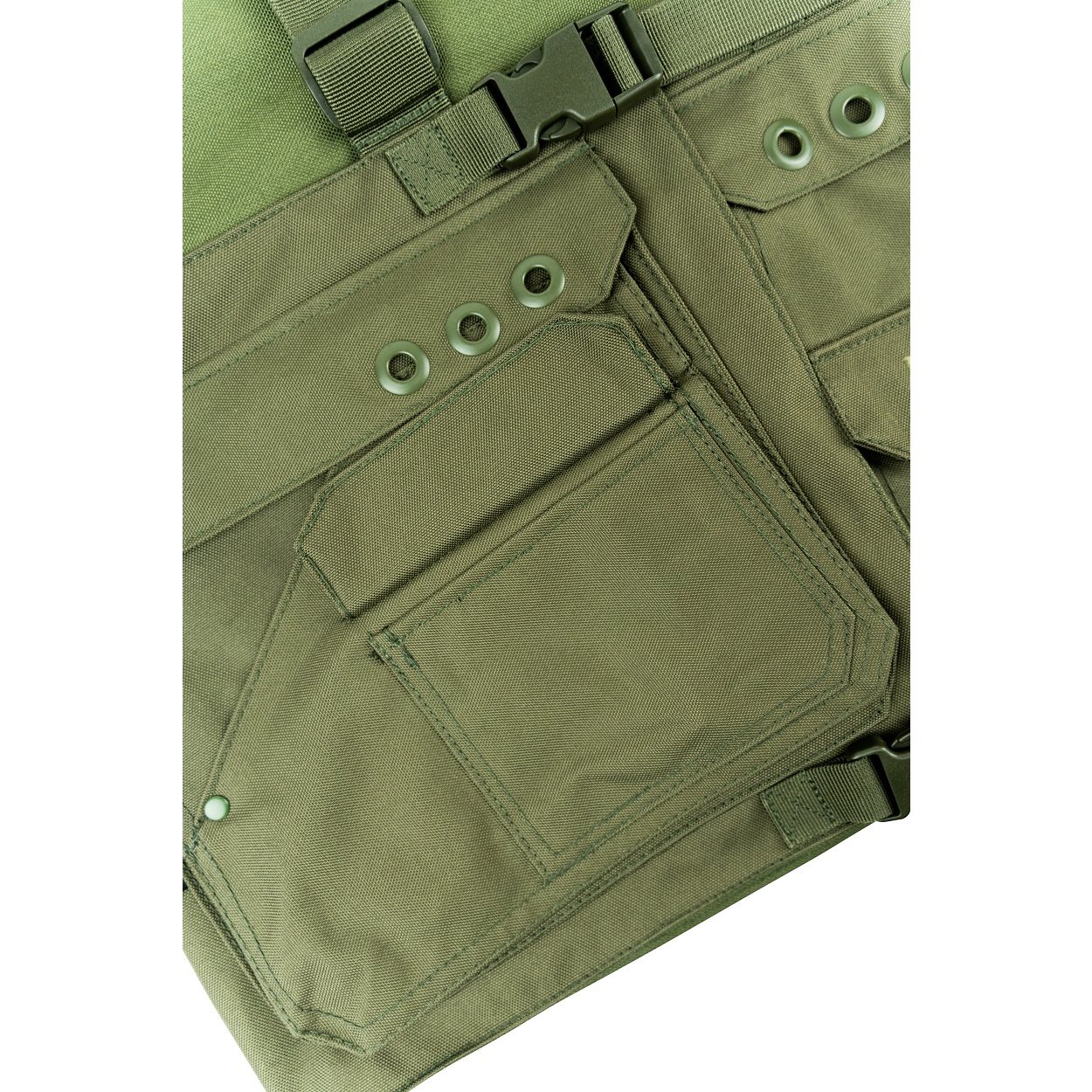 2 ampie tasche anteriori, 2 tasche anteriori medie, 2 piccole tasche anteriori, 2 ampie tasche posteriori con chiusura a zip, spallacci regolabili, taglia unica, materiale: 600D Cordura Ulteriori informazioni