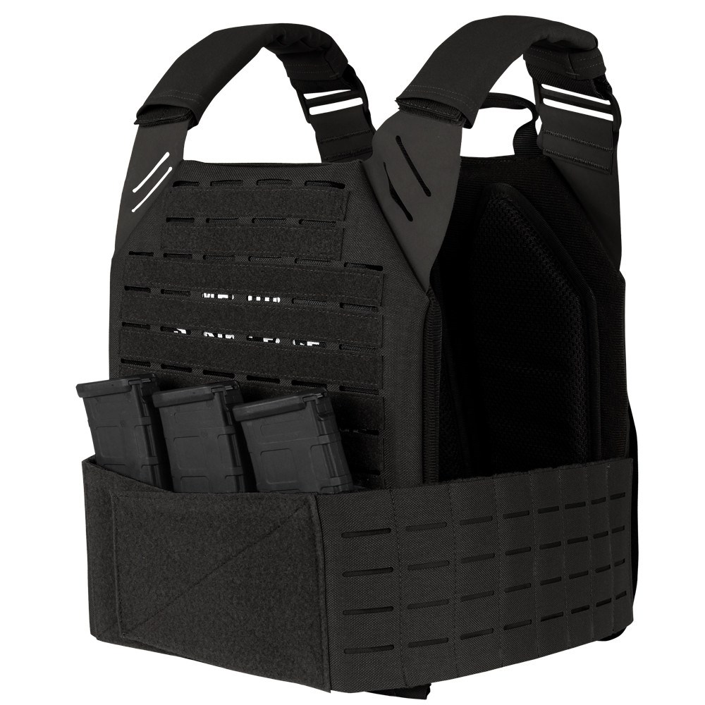 La versione Elite LCS (Laser Cut System) del supporto per piastre si differenzia principalmente per l'utilizzo di un sistema di aggancio tagliato al laser, che ha consentito di ridurre il peso del giubbotto del 30%. Il supporto stesso, senza ulteriori accessori, rappresenta una soluzione a basso profilo per il trasporto di protezioni balistiche e consente l'inserimento di piastre SAPI di dimensioni Medium o Large fino a 10,25 x 13,25 pollici (260 x 330 mm). per il trasporto di protezioni balistiche e consente l'inserimento di piastre SAPI di dimensioni Medium o Large fino a 10,25 x 13,25 pollici (260 x 337 mm). Le piastre vengono inserite nelle tasche del supporto tramite una patta inferiore chiusa con velcro.