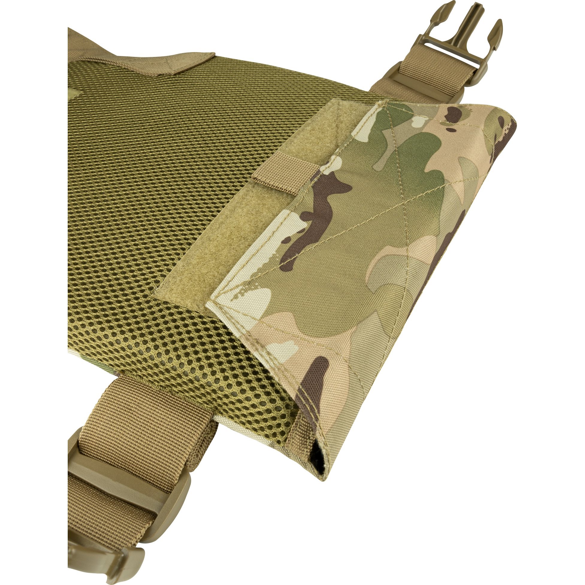 Porta-pannelli minimalista caratterizzato da un peso ridotto. È progettato per limitare il meno possibile i movimenti dell'utente e offrire un elevato livello di modularità. Grazie al sistema di aggancio modulare anteriore e posteriore standard MOLLE/PALS, il porta-pannelli è compatibile con accessori aggiuntivi quali tasche per caricatori, fondine, ecc. Nella parte anteriore è presente una striscia di velcro destinata alle vostre toppe e targhette identificative. All'interno, il supporto è imbottito con rete 3D, che allo stesso tempo garantisce un certo grado di dissipazione del calore in eccesso. I lati sono costituiti da cinghie regolabili chiuse con fibbia in plastica fastex. Gli spallacci sono dotati di imbottitura rimovibile e regolabili tramite velcro. Sono inoltre dotati di passanti per i tubi della sacca idratante o l'antenna della radio.