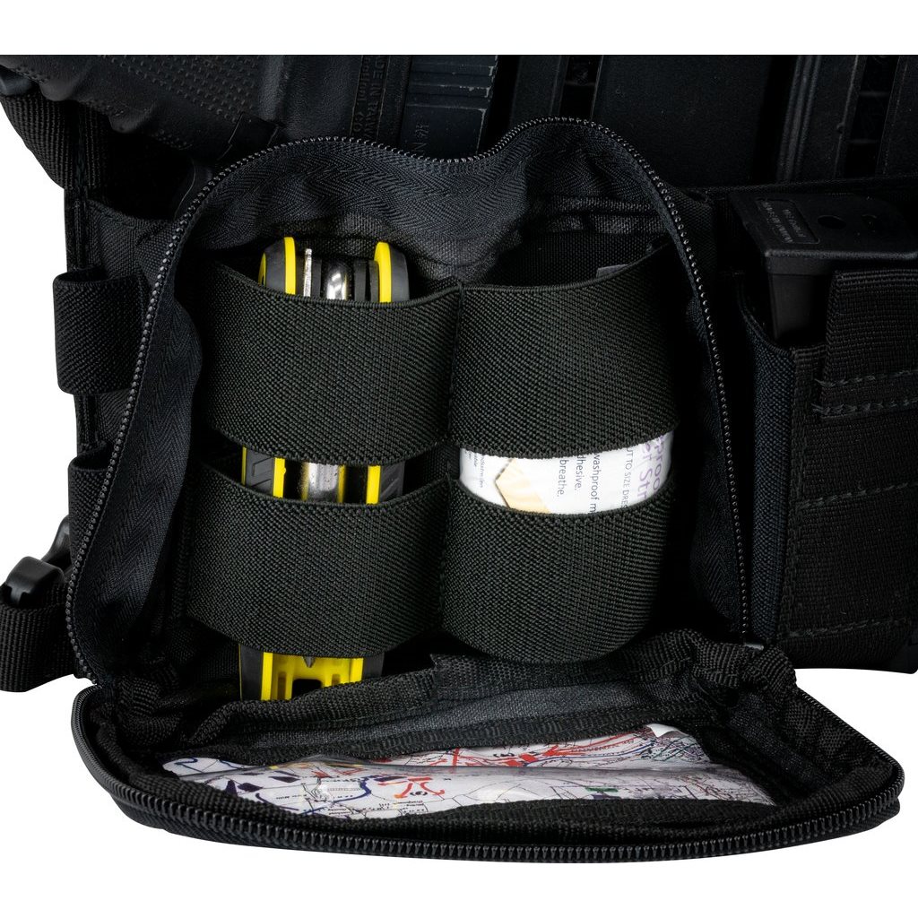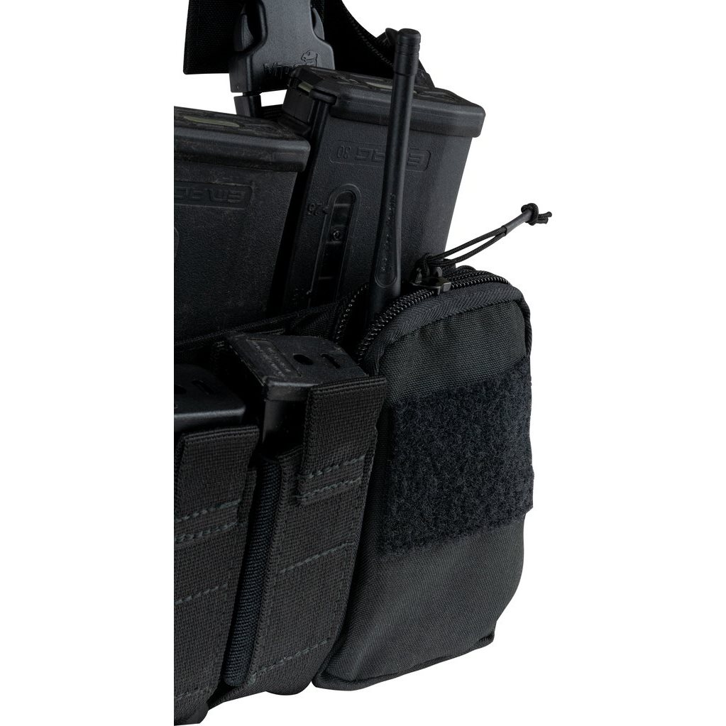 L'intera larghezza del chest rig dietro le tasche anteriori è occupata da uno scomparto rivestito in velcro. Questo serve per inserire inserti elastici (tasche inseribili per caricatori calibro .308 / .223 / 9 mm L) della collezione VX o altri compatibili. Ai lati del rig sono cuciti dei passanti elastici che consentono, ad esempio, di infilare bastoncini luminosi (lightstick). La capacità di carico del chest rig può essere ulteriormente aumentata fissando un marsupio sospeso.