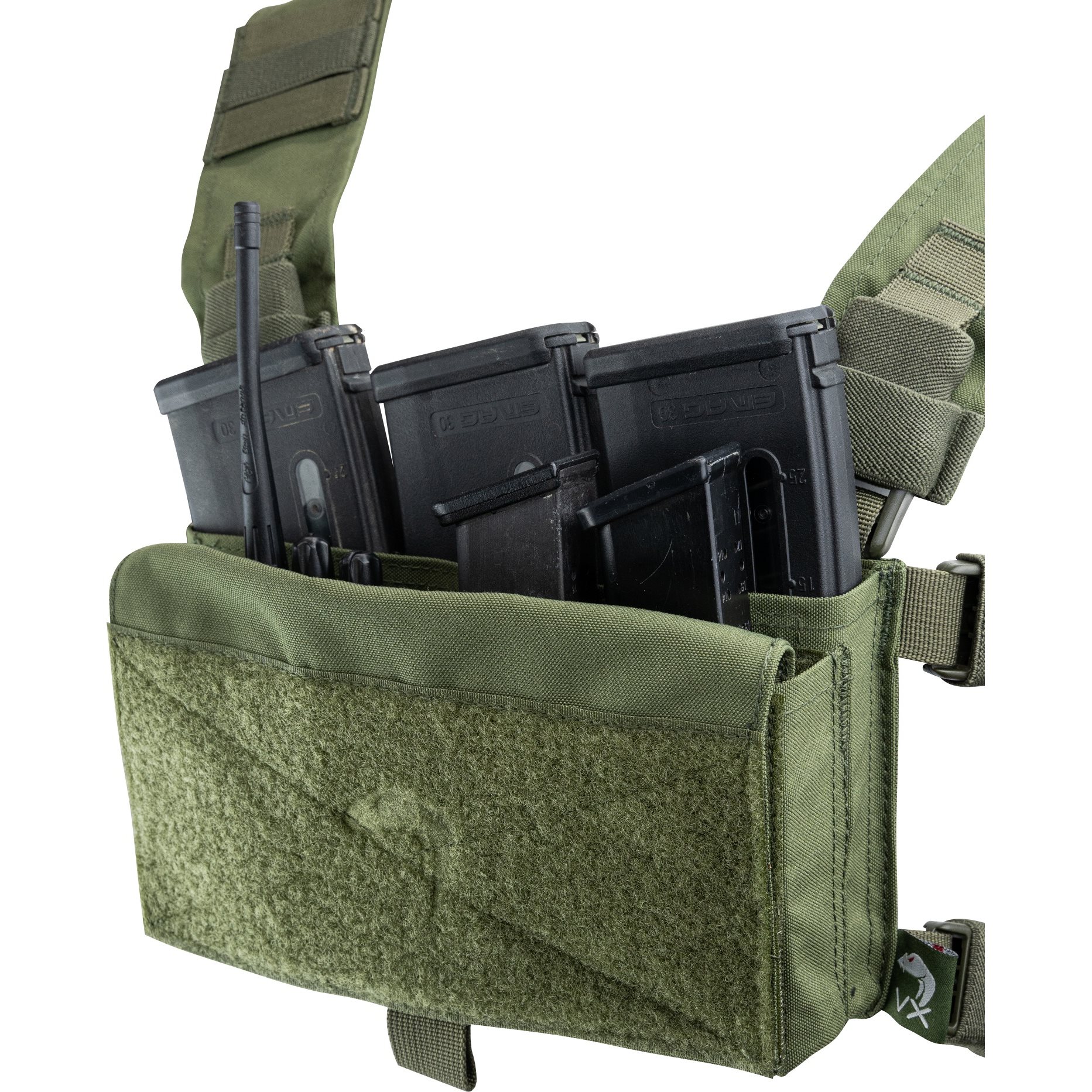 Il chest rig è costituito essenzialmente da una doppia tasca foderata in pile con una patta staccabile con chiusura in velcro e cinghie di trasporto fissate con fibbie fastex. Il chest rig fa parte della linea di prodotti Viper VX, che comprende accessori compatibili opzionali. Ad esempio, inserti elastici in velcro per riporre diversi tipi di caricatori (.308 / .223 / mitragliatrici / pistole / fucili) o pistole. La capacità di carico del chest rig può essere ulteriormente aumentata fissando una tasca laterale o dei fianchi con chiusura modulare in velcro sul retro del gilet.