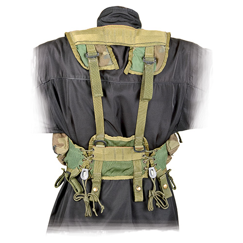 Gilet tattico originale utilizzato, noto anche come ETLBV (Enhanced Tactical Load Bearing Vest). Il gilet TLBV originale è stato introdotto nell'ambito del sistema IIFS (Individual Integrated Fighting System) nelle forze armate statunitensi nel 1988 con l'obiettivo di sostituire la vecchia configurazione di cintura e cinghie del sistema ALICE. La differenza più evidente rispetto alla versione originale del gilet è la forma obliqua delle tasche porta munizioni, che servono a facilitare l'estrazione delle munizioni. tracolle del sistema ALICE. La differenza più evidente rispetto alla versione originale del giubbotto è il design inclinato delle tasche porta caricatori, che facilitano l'estrazione dei caricatori. Tutte le tasche sono chiuse con bottoni a pressione e velcro. La regolazione della circonferenza del giubbotto avviene tramite cinghie anteriori con fibbie fastex e allacciatura sul retro, mentre la regolazione dell'altezza avviene tramite quattro cinghie sulle spalle.