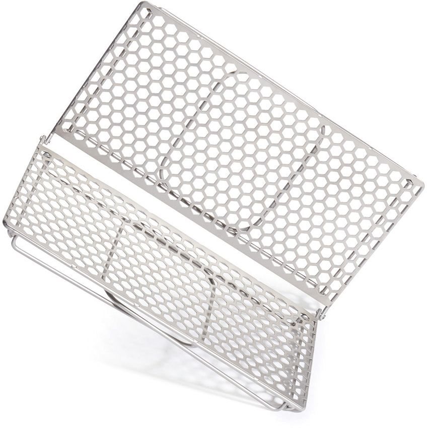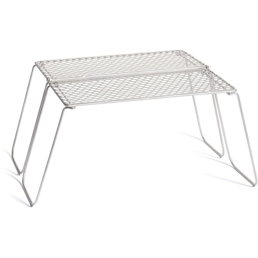 Griglia pieghevole ultraleggera del produttore americano VARGO. Per la sua realizzazione è stato utilizzato titanio resistente di qualità alimentare e il suo principale vantaggio è la possibilità di ripiegarla rapidamente fino a raggiungere le dimensioni di soli 19,7 x 10,2 x 3,2 cm. Fornita con una pratica custodia per il trasporto.