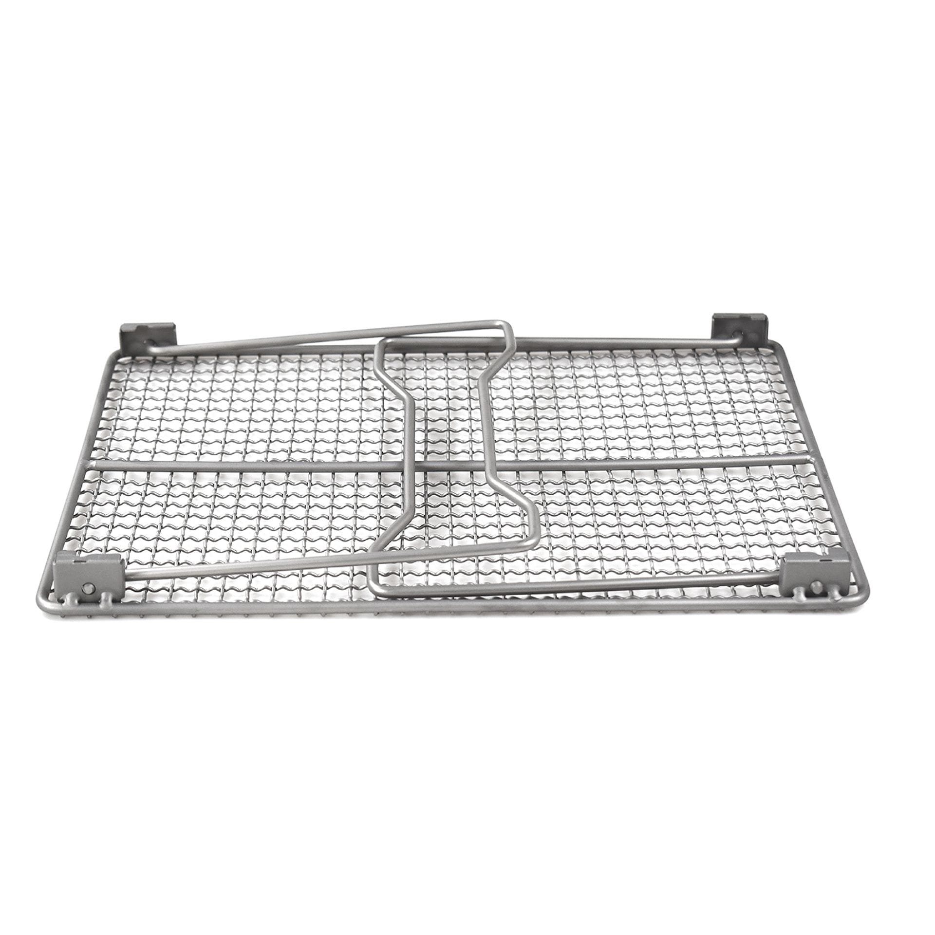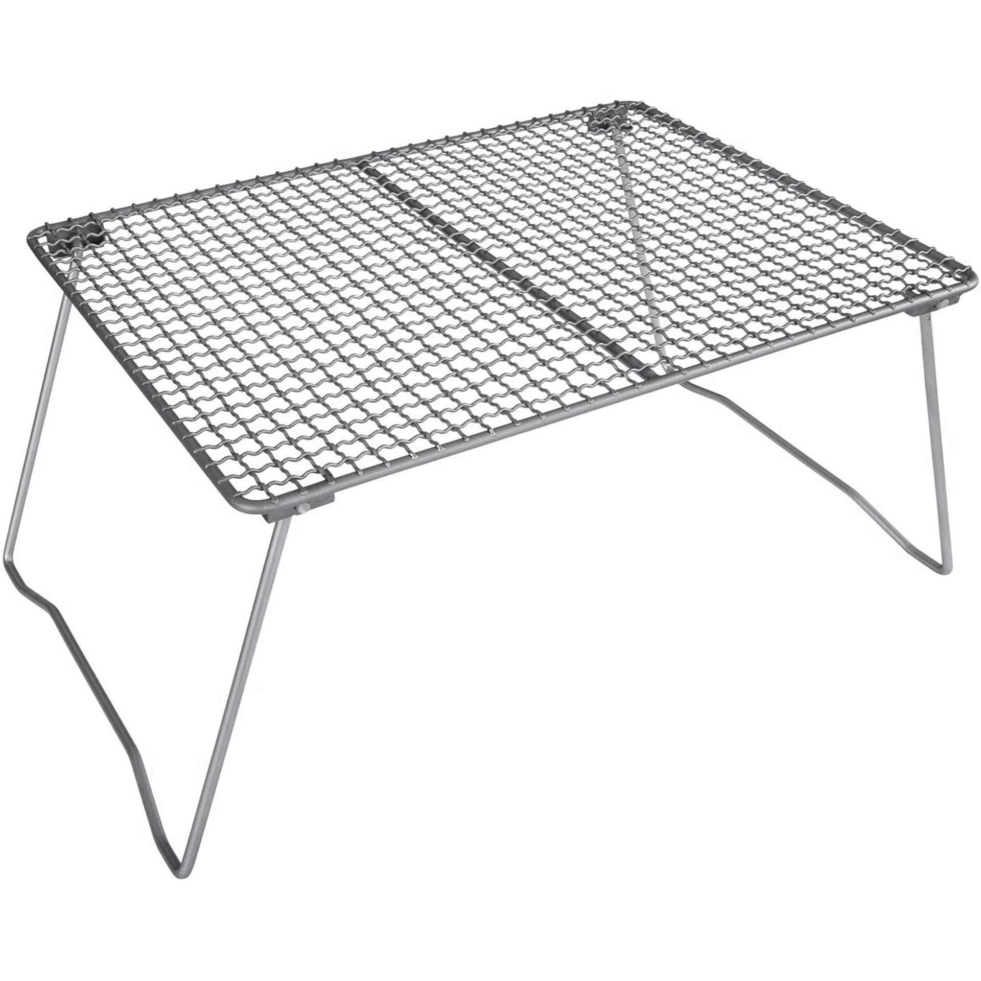 Griglia pieghevole leggera, compatta e robusta o supporto per pentole in titanio con piedini rimovibili in acciaio inossidabile. Rimuovendo i piedini, la griglia può essere trasformata in una semplice griglia per barbecue. Ulteriori informazioni