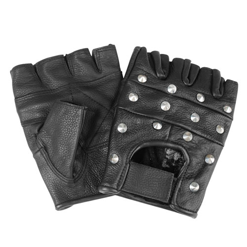 Guanti in pelle. Senza dita. Con rivetti metallici. Chiusura in velcro nella parte inferiore. Particolarmente resistenti e durevoli. Materiale: 100% pelle di capra. Ulteriori informazioni