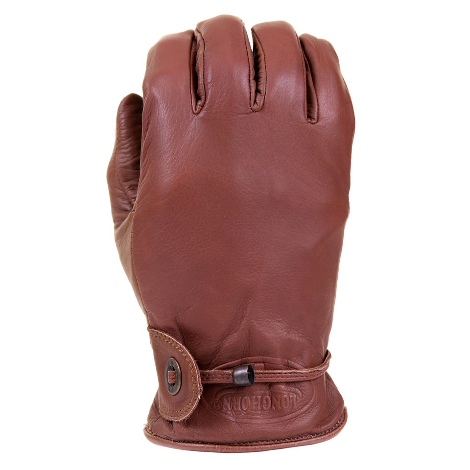 Guanti in pelle resistenti ma morbidi del marchio Longhorn con fodera più calda. Sul polso è presente un elastico più piccolo, il guanto può essere ulteriormente stretto intorno al polso tramite un laccio in pelle che passa attraverso un occhiello metallico. Sui guanti è impresso il logo Longhorn. È possibile