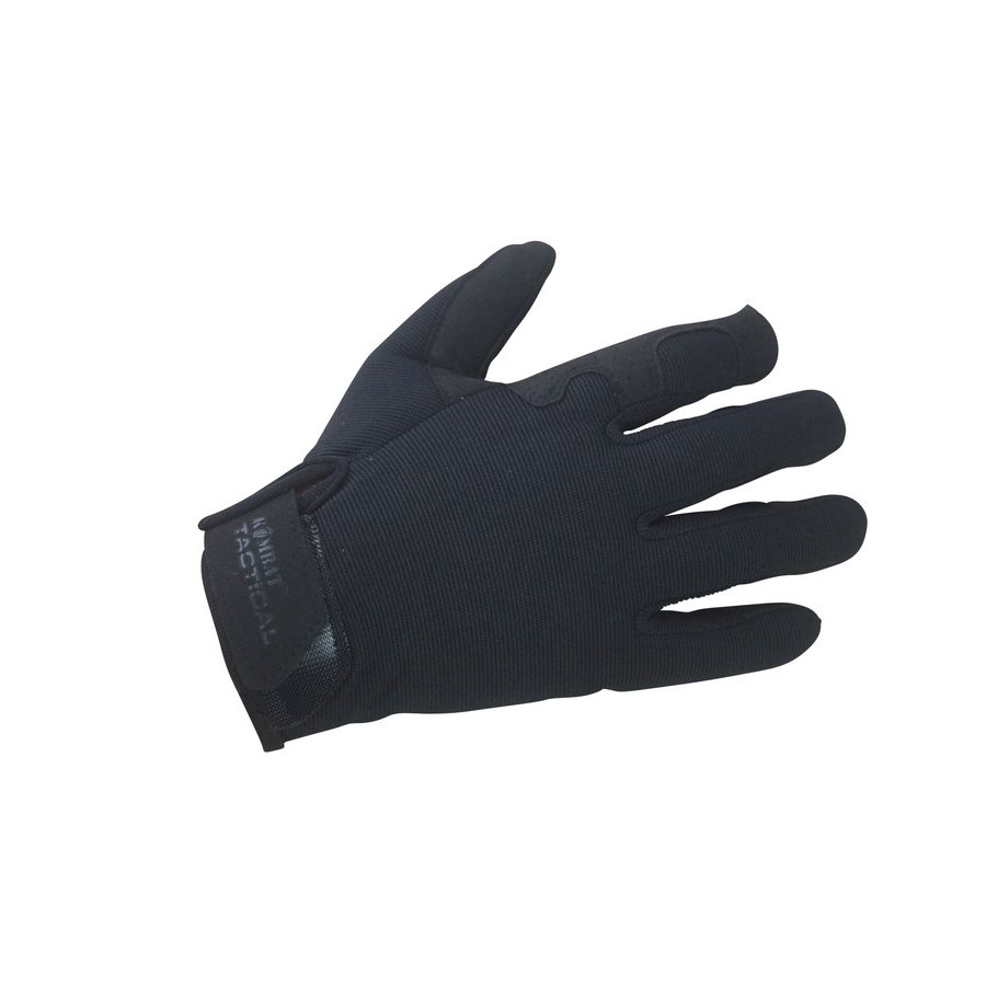 Guanti tattici leggeri e traspiranti. Il corpo dei guanti è realizzato in neoprene elastico, che avvolge piacevolmente la mano senza limitarne in alcun modo i movimenti. Il palmo è rivestito in morbida pelle scamosciata traspirante, con l'aggiunta di pelle sintetica compatibile con i display touch screen sull'indice e sul pollice. Il polso dei guanti è regolabile in larghezza tramite una fascia con chiusura in velcro.