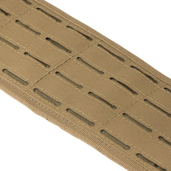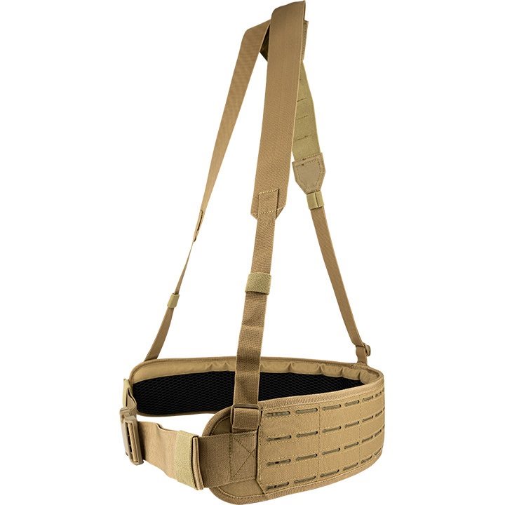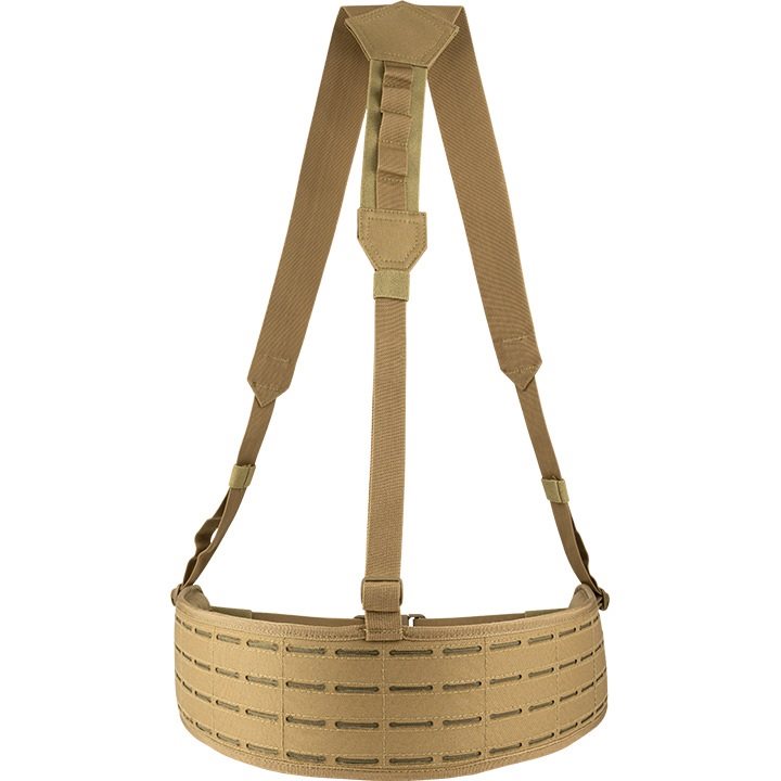 Per garantire il massimo comfort, l'interno della cintura è fortemente imbottito e rivestito con una rete 3D traspirante. L'esterno della cintura è rivestito da una trama MOLLE/PALS intagliata al laser che consente di agganciare una grande quantità di attrezzature compatibili. L'imbracatura è fissata alla cintura in tre punti ed è dotata di fibbie che consentono di sganciarla rapidamente.
