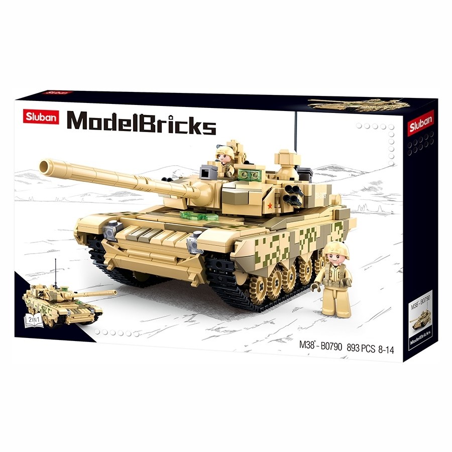 Un kit di montaggio di grandi dimensioni del carro armato principale della marca SLUBAN. Il kit di montaggio è composto da 893 pezzi ed è adatto come regalo per bambini dagli 8 anni in su o per appassionati di eserciti. Ulteriori informazioni