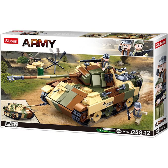 Kit di montaggio del leggendario carro armato tedesco "medio" PANTHER, che può essere convertito in un cacciacarri JAGDPANTHER. Il kit contiene tre figurine e un totale di 725 pezzi. Un regalo eccellente per un bambino o un appassionato di storia militare. Adatto a partire dai 6 anni.
