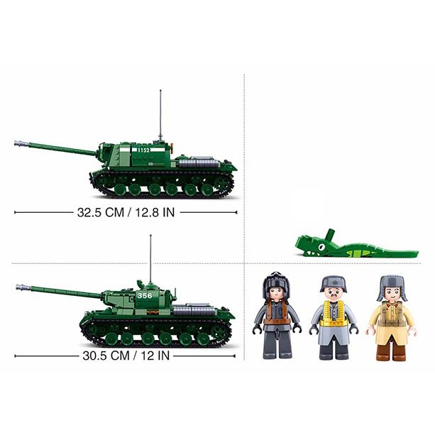 Kit di montaggio del carro armato pesante sovietico IS-2, che può essere convertito in un cannone semovente ISU-122. Il kit contiene un totale di tre figurine e 845 pezzi. Un regalo eccellente per i bambini o gli appassionati di storia militare. Adatto a partire dai 6 anni.