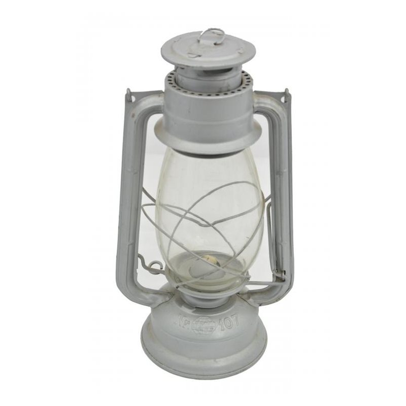 Lampada a petrolio classica con superficie argentata opaca. Prodotto tradizionale di alta qualità, il vetro è più resistente rispetto alle lampade a petrolio moderne. Merce conservata a lungo, può presentare lievi segni esterni di usura. Ulteriori informazioni