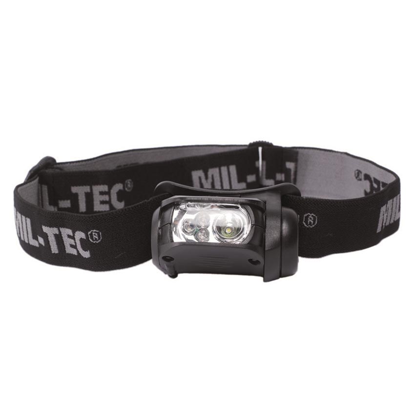 Lampada frontale con 12 LED bianchi con durata di 100.000 ore. Design impermeabile, lampada inclinabile di 90°, cinghie elastiche regolabili, alimentazione con due batterie AA (non incluse).
