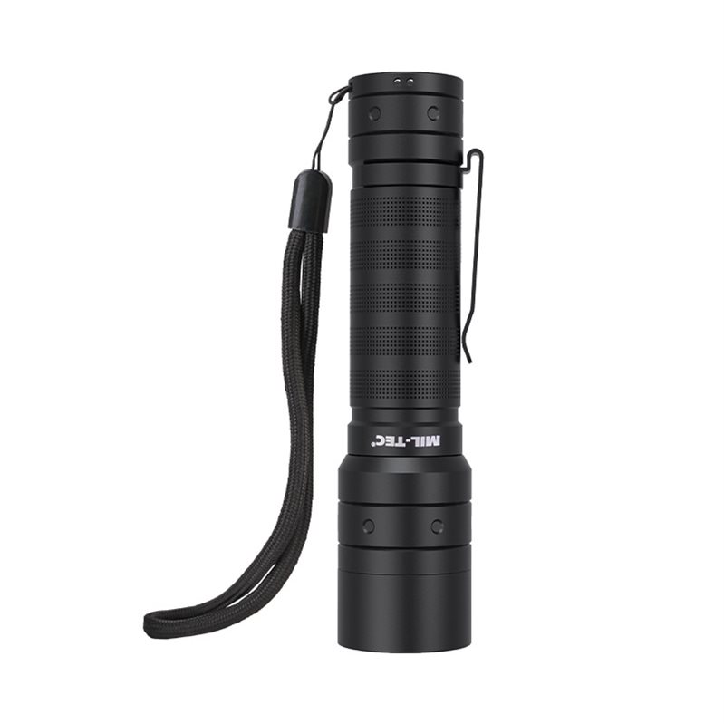 Torcia robusta dotata di una potente lampadina Luminus SST-40 con una potenza massima di 1000 lumen e una portata fino a 300 m. Il corpo ha una resistenza IPX4 che protegge dagli spruzzi d'acqua. L'alimentazione è fornita da una batteria ricaricabile al litio 18650, oppure è possibile utilizzare l'adattatore in dotazione per 3 batterie AAA. Il cono di luce emesso dalla torcia è regolabile ruotando la testa. Una volta accesa, sono disponibili quattro modalità di illuminazione (alta, media, bassa, strobo). Il prodotto viene fornito con un cinturino di sicurezza rimovibile, una custodia in poliestere, un cavo USB ricaricabile e un'elegante confezione regalo.