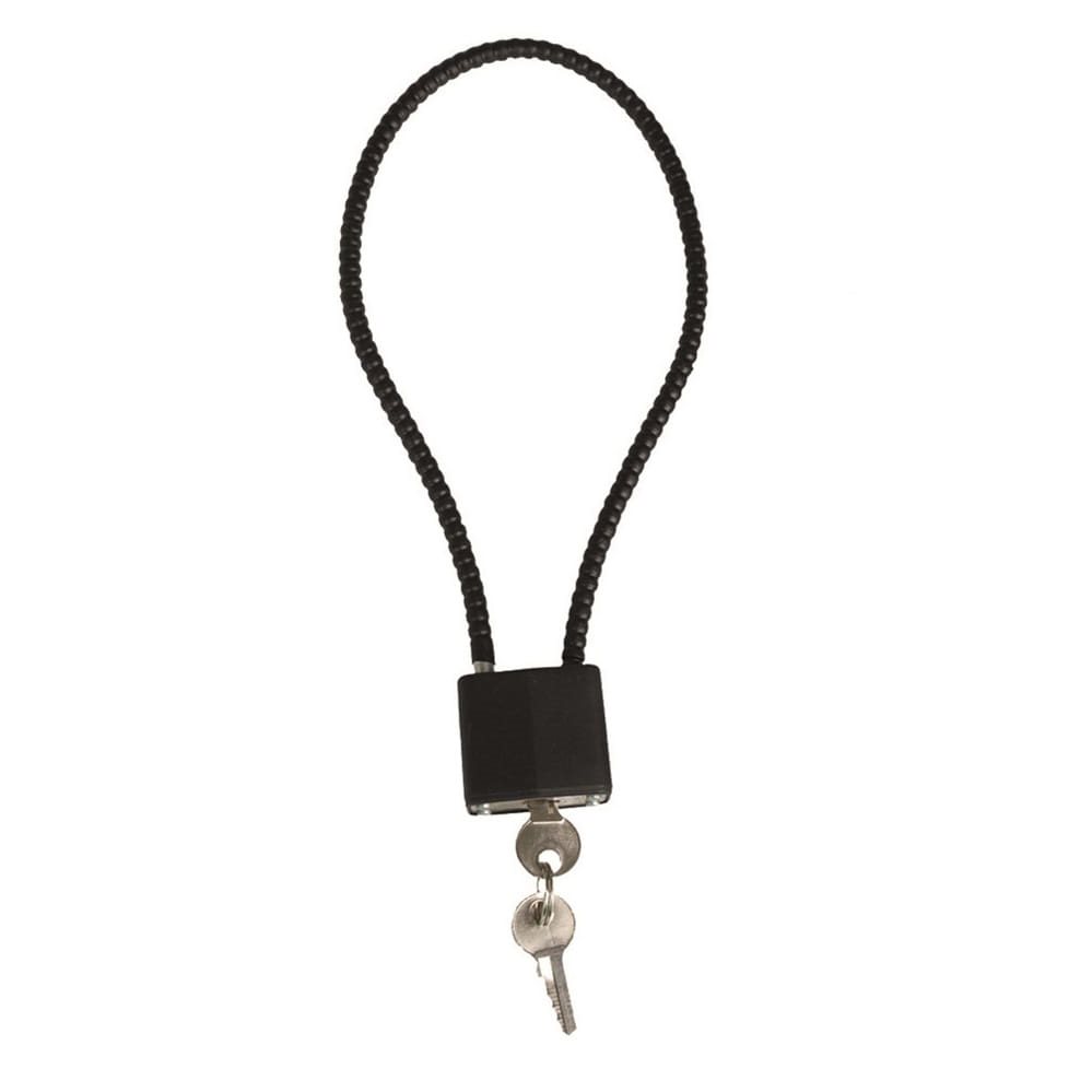 Lucchetto con cavo in acciaio lungo 38 cm. Utilizzato principalmente per proteggere le armi da un uso non autorizzato.