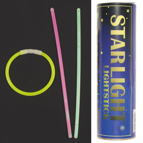 Bastoncini luminosi 5 x 200 mm, possono essere uniti per formare un braccialetto. Colori assortiti, confezione da 65 pezzi.
