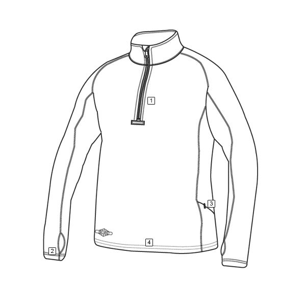 Maglia di peso medio con fodera calda e traspirante (grid fleece) per l'uso in condizioni climatiche più fredde.