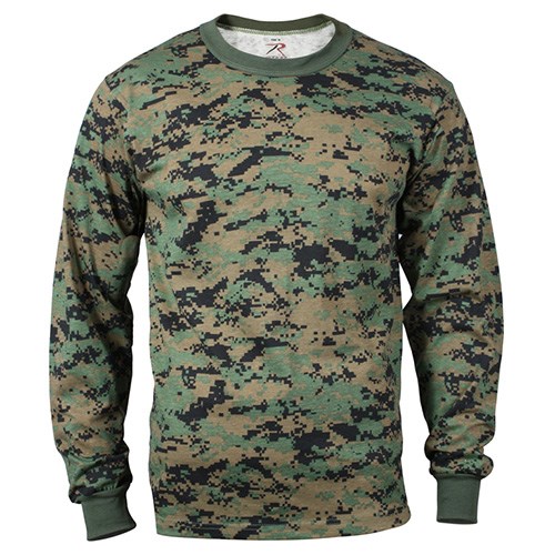 Maglietta militare di alta qualità con maniche lunghe in versione mimetica della ditta Rothco. Disponibile in vari modelli mimetici classici e moderni, abbinabili ai pantaloni e alle camicie BDU della ditta Rothco. Adatta anche alla stampa.