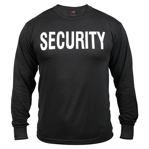 Maglietta di alta qualità della ditta ROTHCO, maniche lunghe. Grande scritta di alta qualità sul petto SECURITY. Adatta per le forze dell'ordine, le agenzie di vigilanza e i servizi di organizzazione. Questa maglietta garantisce la stabilità del colore nero e la durata della scritta.