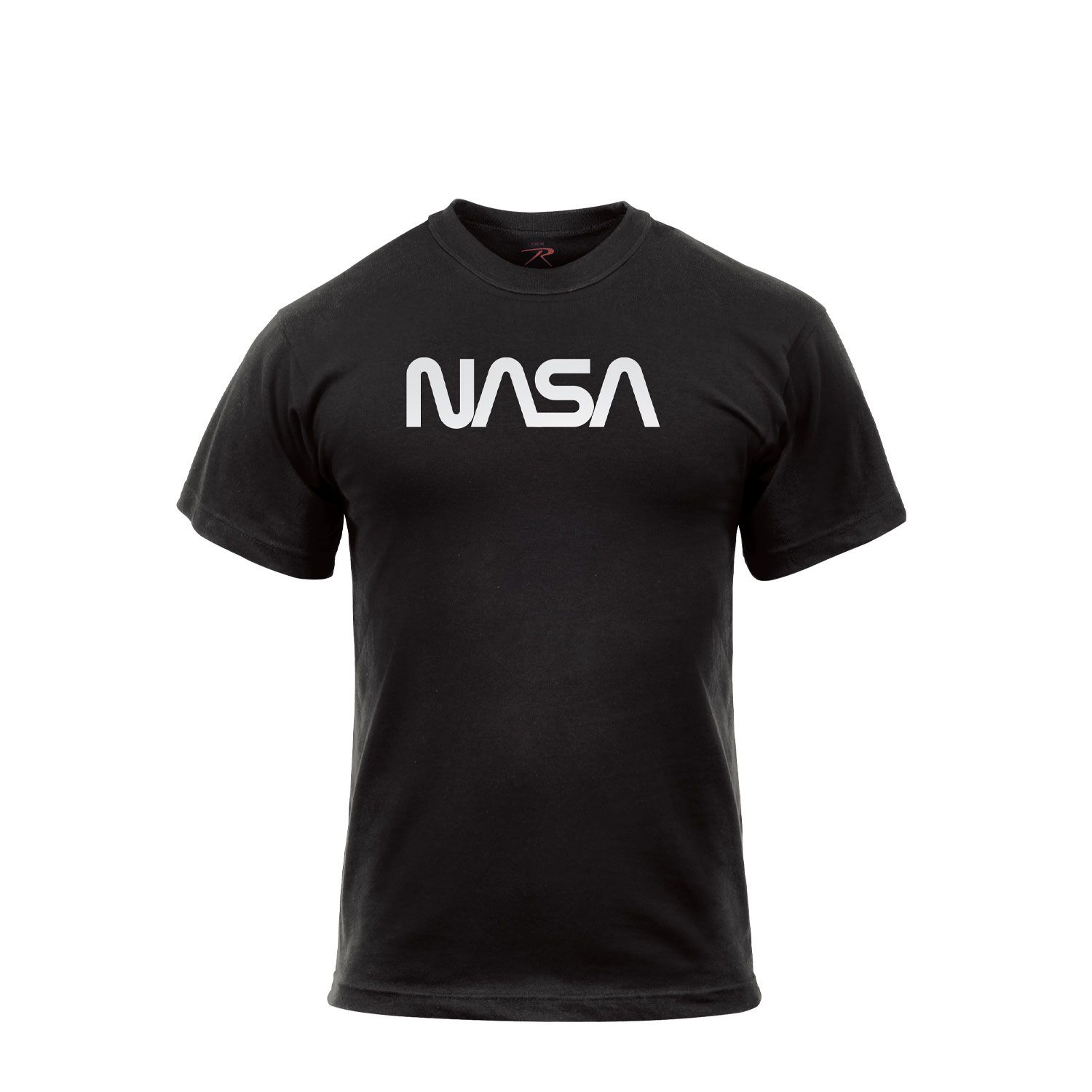 Maglietta di alta qualità della ditta Rothco in colore nero con logo NASA. La maglietta è realizzata in una combinazione di cotone e poliestere.