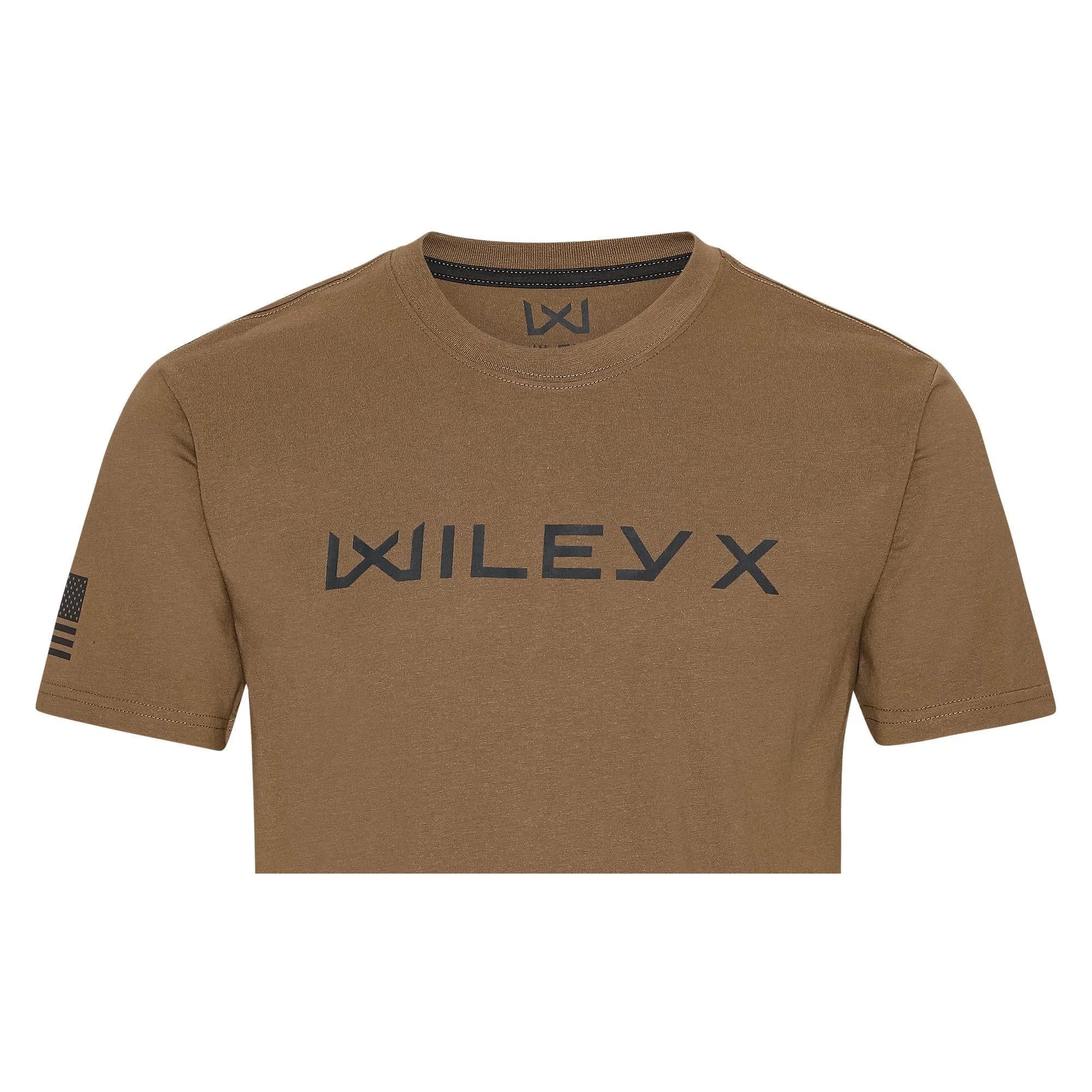 La maglietta è realizzata in 60% cotone e 40% poliestere, che garantiscono una qualità piacevole e morbida e il massimo comfort. È progettata con un grande logo Wiley X orizzontale a contrasto sul lato anteriore sinistro della maglietta e un'etichetta WX nella cucitura dell'orlo inferiore. Sulla manica destra è stampata la bandiera americana, con le stelle rivolte in avanti, proprio come sulle uniformi americane. Il collo rotondo e le maniche corte conferiscono a questa maglietta un look casual e sportivo. La maglietta è disponibile in diverse taglie e colori.