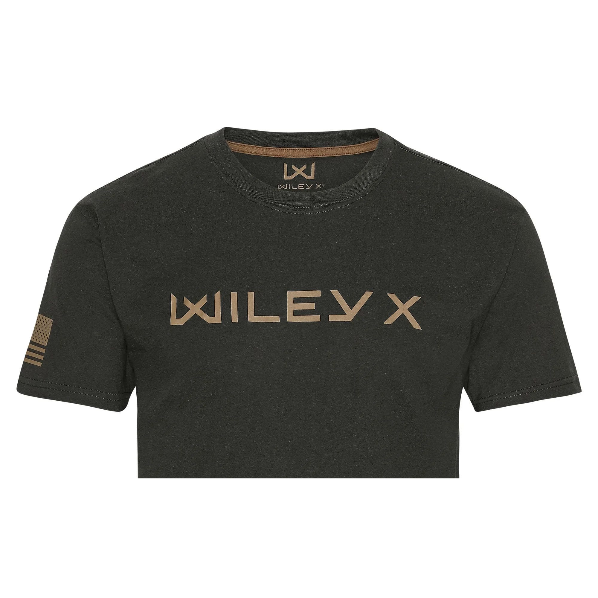 La maglietta è realizzata in 60% cotone e 40% poliestere, che garantiscono una qualità piacevole e morbida e il massimo comfort. È progettata con un grande logo Wiley X orizzontale a contrasto sul lato anteriore sinistro della maglietta e un'etichetta WX nella cucitura dell'orlo inferiore. Sulla manica destra è stampata la bandiera americana, con le stelle rivolte in avanti, proprio come sulle uniformi americane. Il collo rotondo e le maniche corte conferiscono a questa maglietta un look casual e sportivo. La maglietta è disponibile in diverse taglie e colori.