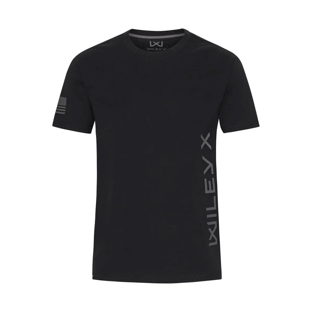 La maglietta è realizzata in 60% cotone e 40% poliestere, che garantiscono una qualità piacevole e morbida e il massimo comfort. È progettata con un grande logo Wiley X verticale a contrasto sul lato anteriore sinistro della maglietta e un'etichetta WX nella cucitura dell'orlo inferiore. Sulla manica destra è stampata la bandiera americana, con le stelle rivolte in avanti, proprio come sulle uniformi americane. Il collo rotondo e le maniche corte conferiscono a questa maglietta un look casual e sportivo.