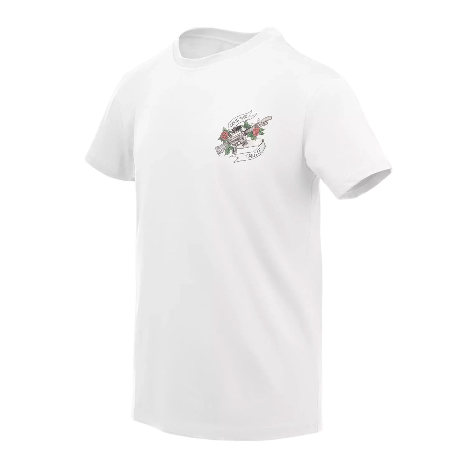 Comoda maglietta in cotone dal taglio classico e dal peso più consistente. Come è consuetudine per l'azienda Helikon-Tex, è realizzata con ottima qualità. La maglietta presenta la scritta COME AND TAKE IT.