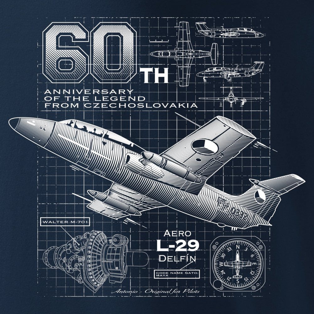 60° anniversario della leggenda cecoslovacca. Maglietta che evoca i progetti tecnici dell'icona dell'aviazione a reazione. Peso 200 g/m2. Ulteriori informazioni