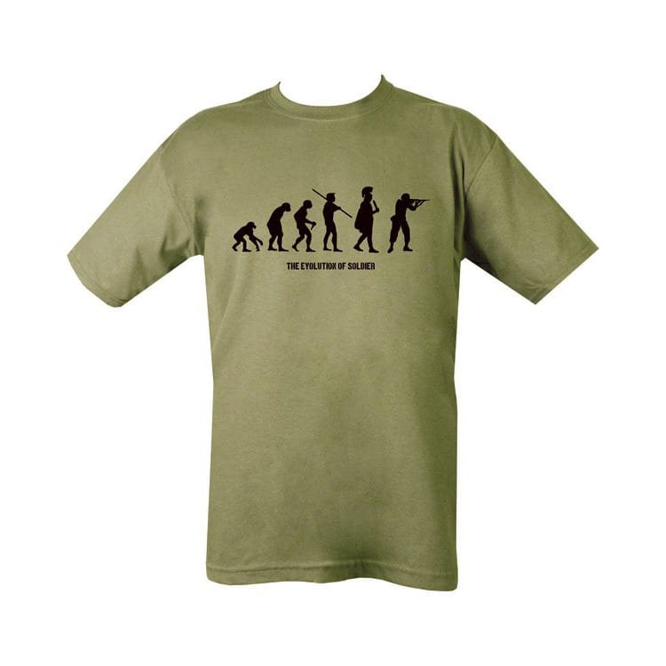 Maglietta in cotone con motivo EVOLUZIONE DEL SOLDATO e scritta "THE EVOLUTION OF SOLDIER".