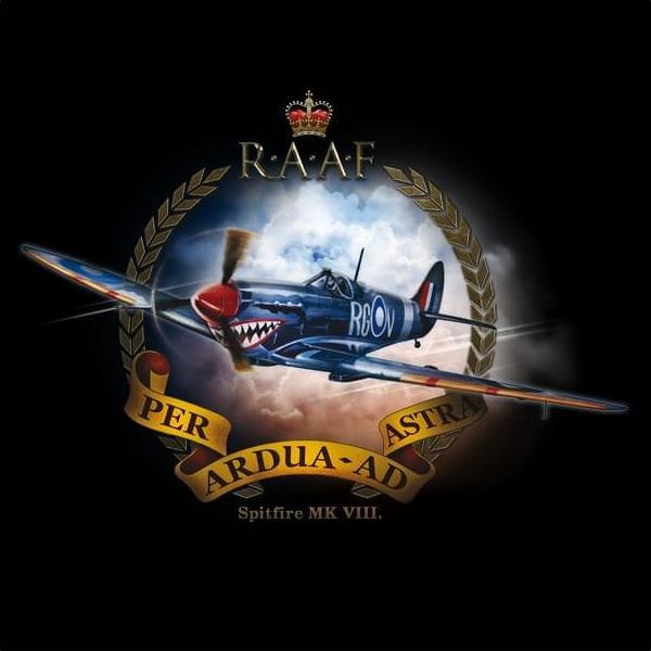 Maglietta a maniche corte con stampa a colori di alta qualità con motivo aeronautico Spitfire Mk.VIII.