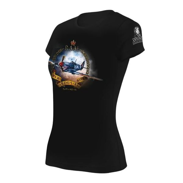 Maglietta da donna a maniche corte con stampa a colori di alta qualità. Il motivo principale è il famoso aereo Spitfire MK.VIII, diventato simbolo della battaglia d'Inghilterra nel 1940. La maglietta è realizzata in un materiale molto confortevole. Ulteriori informazioni