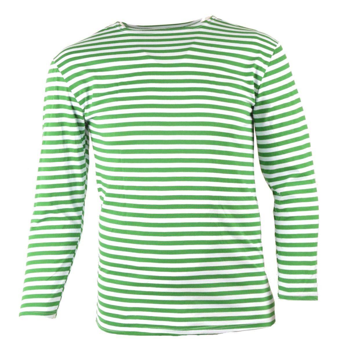 Maglietta a righe marinare con maniche lunghe, con strisce verdi e bianche. Realizzazione di alta qualità, materiale: cotone. Ulteriori informazioni