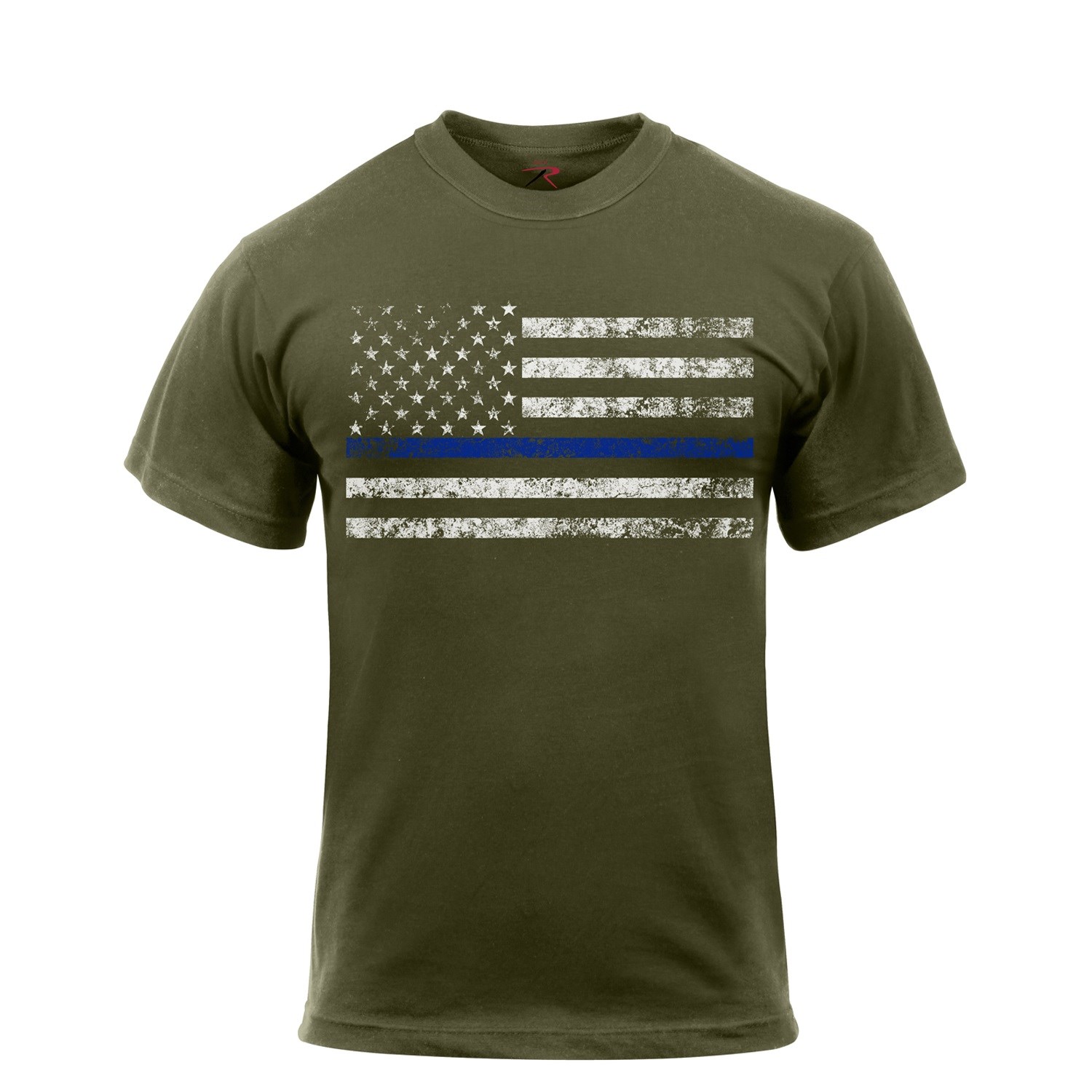 Maglietta a maniche corte, taglio atletico, con grande bandiera americana e striscia blu. La striscia blu rappresenta il sostegno ai membri delle forze dell'ordine. Il taglio atletico implica un colletto inserito, la maglietta è più ampia nella zona del torace e le maniche sono leggermente più larghe e corte rispetto alle magliette tradizionali. Questo modello valorizza particolarmente una figura atletica. sono leggermente più ampie e corte rispetto alle magliette tradizionali. Questa maglietta valorizza particolarmente il fisico atletico. Materiale: 60% cotone, 40% poliestere.