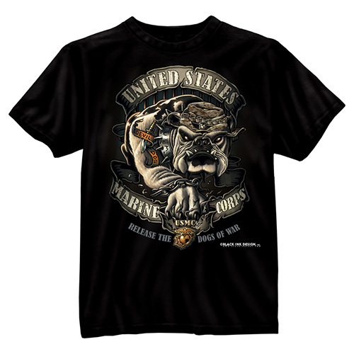 Comoda maglietta nera in cotone pesante a maniche corte, con stampa di alta qualità su entrambi i lati con il motivo US MARINE CORPS - Devil Dog. Il motivo più grande è sul retro.