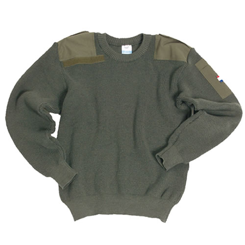 Maglione COMMANDO olandese di alta qualità • colore: verde • rinforzi sulle spalle • spalline • bandiera olandese sulla manica sinistra • materiale: 100% lana Ulteriori informazioni