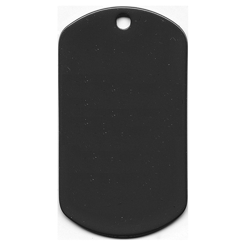 Medaglietta identificativa in acciaio inossidabile con superficie nera. Prezzo per singolo pezzo (non per coppia) senza catena. Dimensioni 50 x 28 cm.