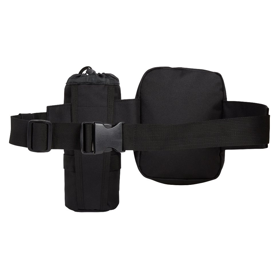 Resistente marsupio combinato con cintura tattica e custodia per bottiglia. Tutti e tre i prodotti sono realizzati in poliestere 600D, che offre un ottimo rapporto tra resistenza e leggerezza.