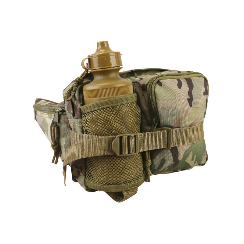 Marsupio con bottiglia inserita in una rete resistente ed elastica. Il marsupio presenta uno scomparto principale ampio e una tasca più piccola. Materiale: bottiglia in plastica, marsupio in Cordura 600D. Ulteriori informazioni