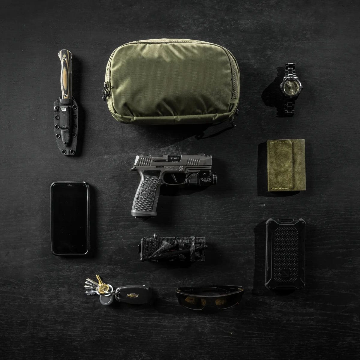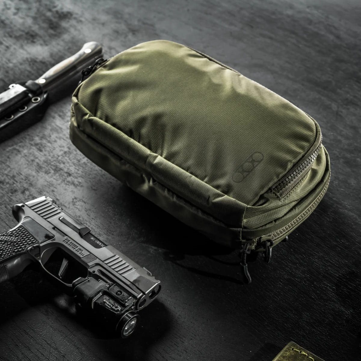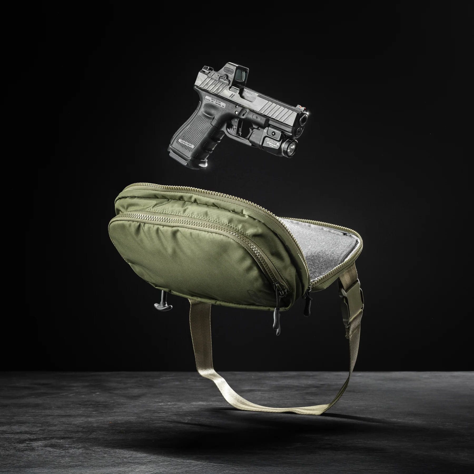 Marsupio CCW che, allungando la tracolla, può essere utilizzato come zaino minimalista a tracolla con la possibilità di nascondere un'arma corta, compreso il mirino. Ulteriori informazioni