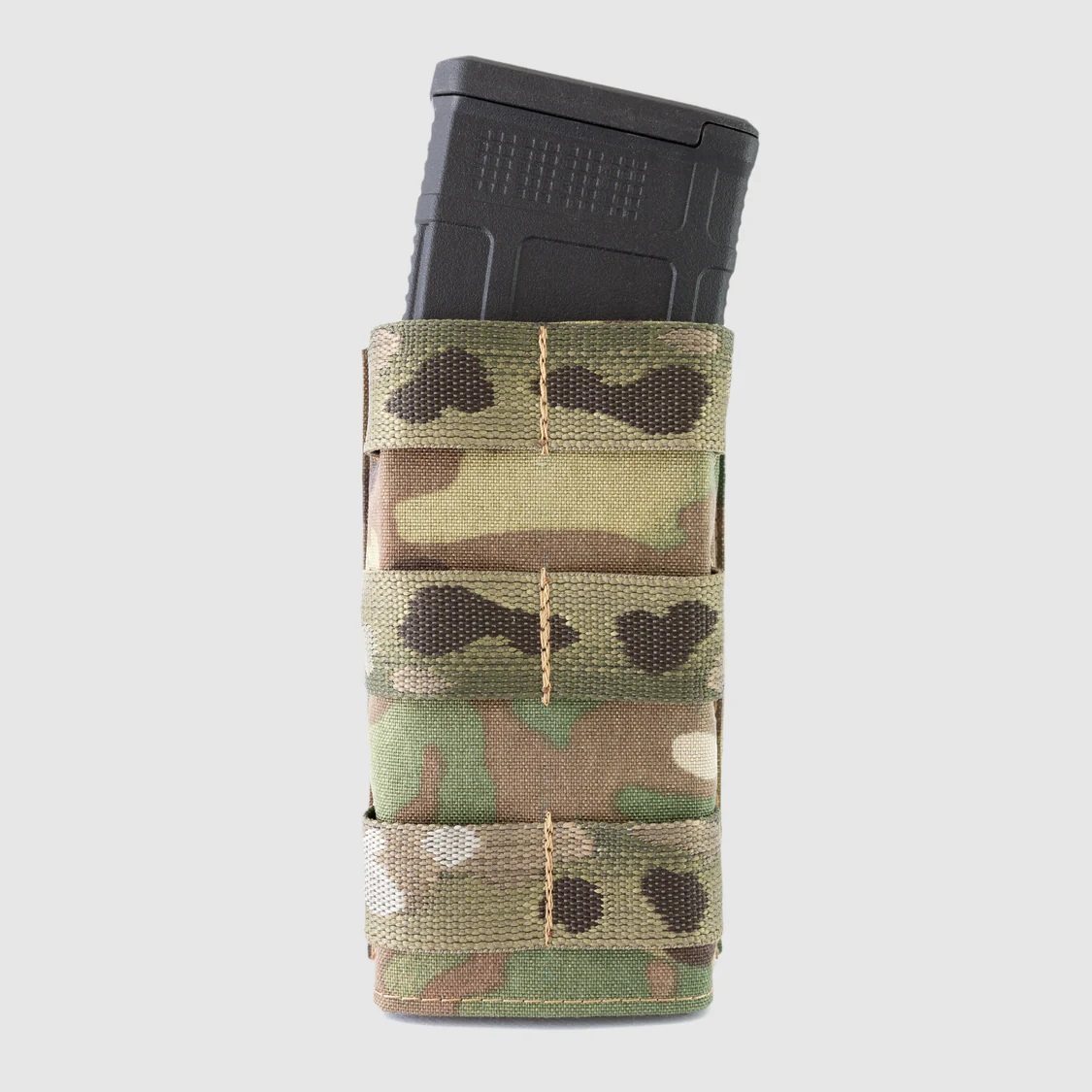 La custodia FAST per 1 caricatore AR 15 è realizzata con un inserto in kydex che trattiene il caricatore inserito e un rivestimento in Cordura. È progettata in modo tale che il caricatore possa essere facilmente rimosso e reinserito durante la ricarica tattica. Sul lato anteriore della custodia è cucito un sistema di aggancio MOLLE per fissare altre custodie.