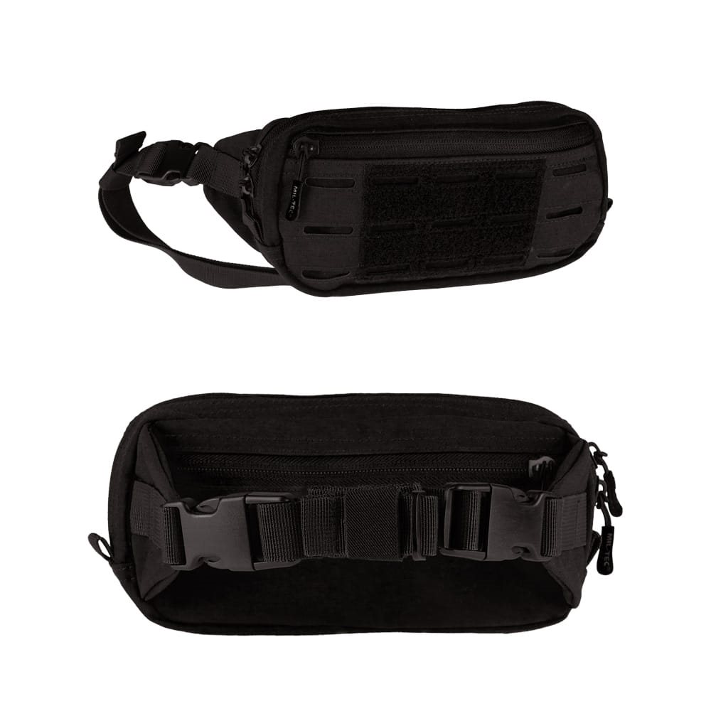 Pratico marsupio: piccolo, leggero, compatto, con sistema di aggancio MOLLE LASER e pannello in velcro per l'applicazione di patch con chiusura a strappo.
