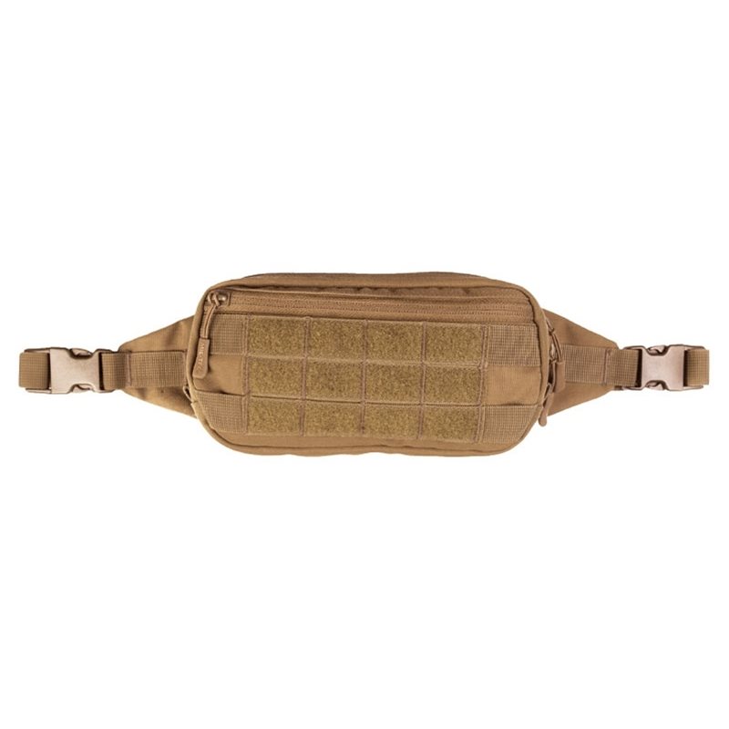 Pratico marsupio - piccolo, leggero, compatto, con sistema MOLLE e pannelli in velcro per il posizionamento di piccoli accessori MOLLE e toppe con velcro. Tasca principale con cerniera a doppio cursore, interna con tasca a rete e occhielli elastici.