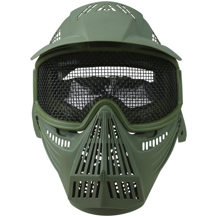 Maschera protettiva a copertura totale con numerose aperture per garantire un'adeguata ventilazione anche durante attività fisiche intense. Rete auricolare per una migliore udibilità.