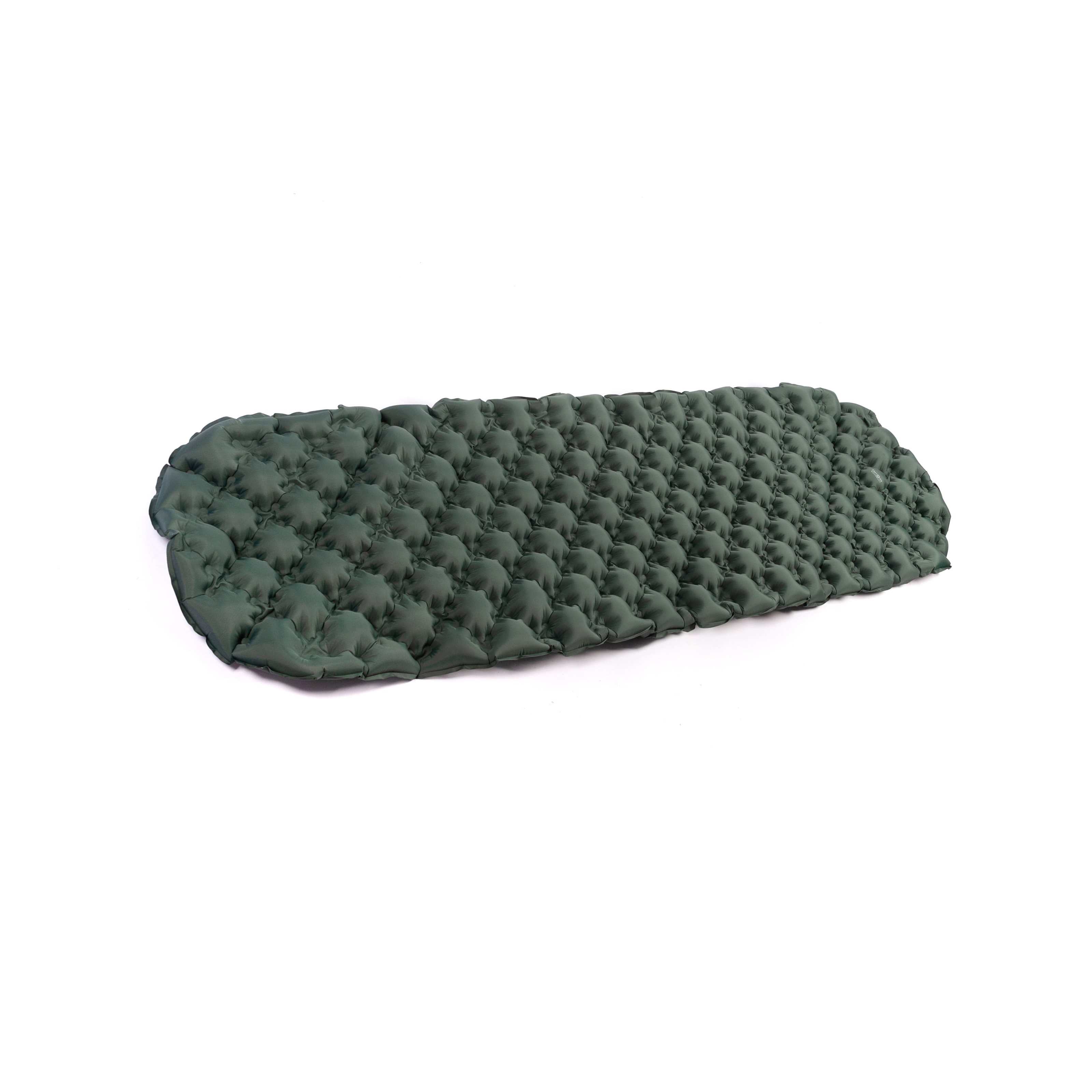 Materassino gonfiabile estremamente leggero e veloce da gonfiare, con dimensioni di imballaggio molto ridotte. Bastano poche boccate d'aria e il materassino si gonfia in pochi secondi. La valvola unidirezionale impedisce la fuoriuscita d'aria tra una boccata e l'altra. Le camere d'aria a nido d'ape riducono la circolazione dell'aria, garantiscono elevate proprietà isolanti e un'esperienza di riposo confortevole. Il materassino è impermeabile, resistente e antistrappo.