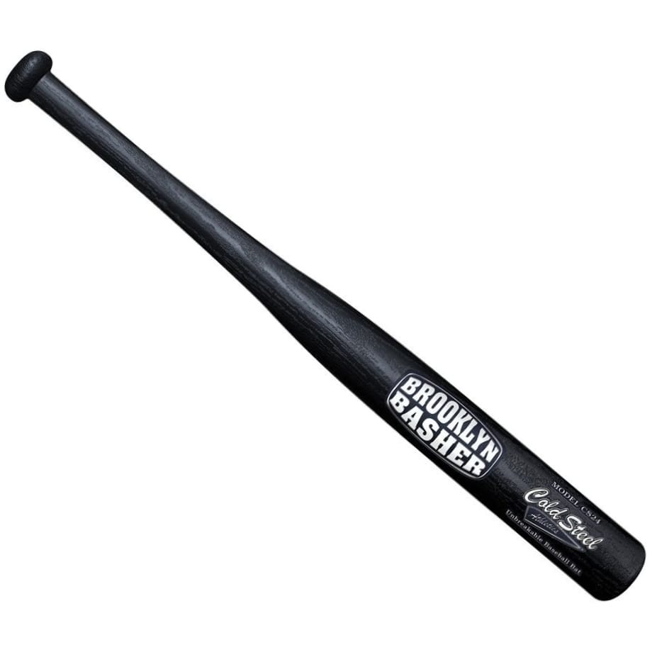 Mazza da baseball in polipropilene lunga 61 cm del marchio COLD STEEL. La mazza presenta la scritta BROOKLYN BASHER e il logo del produttore. Nella zona dell'impugnatura, la mazza ha un diametro di circa 2,5 cm, mentre lo spessore della punta è di circa 5,4 cm.