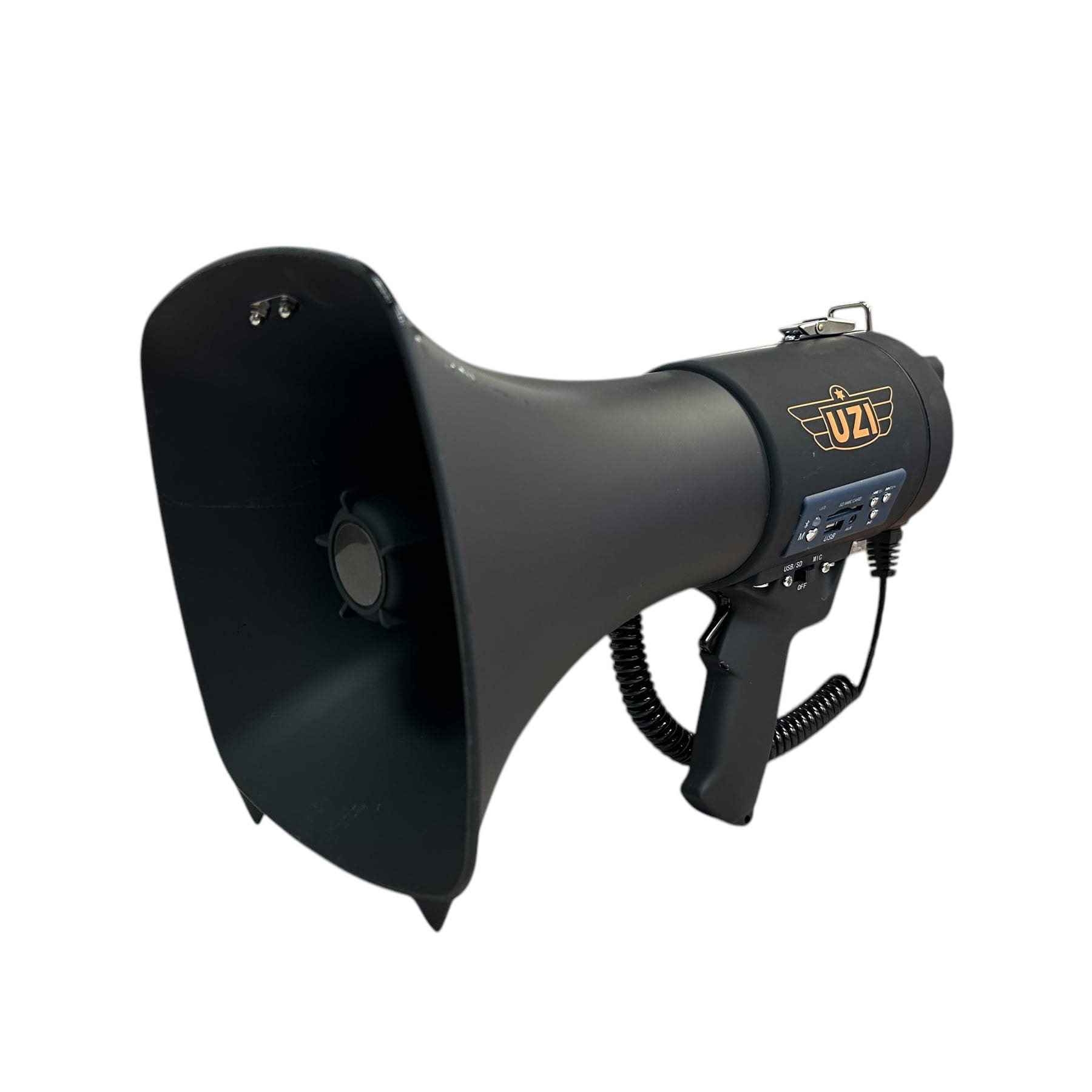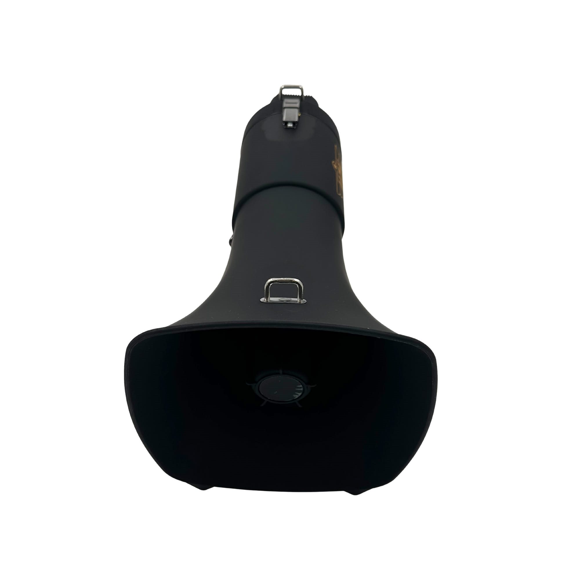 Megafono professionale da 50 W con portata fino a 500 m. Il corpo del megafono è realizzato in plastica ABS, che offre un ottimo rapporto tra resistenza e peso. È un eccellente ausilio per gli insegnanti durante le gite scolastiche, per gli educatori durante le scuole all'aperto, per i manifestanti, per gli appassionati di sport, durante le riunioni e ovunque la voce normale non sia sufficiente o quando si desidera semplicemente preservare le corde vocali. Il dispositivo è dotato di microfono esterno e altoparlante, controllo del volume, spia LED, tecnologia Bluetooth, sirena e anche dispositivo di registrazione (loop di registrazione) e riproduzione, che serve per registrare e riprodurre nuovamente la parola parlata, eliminando la necessità di ripetere continuamente lo stesso testo. Il megafono è alimentato dalla batteria ricaricabile in dotazione o da otto batterie monouso di tipo C (non incluse nella confezione). La batteria è dotata di una spina di tipo americano, è necessario acquistare un adattatore adeguato per la ricarica nelle prese europee.